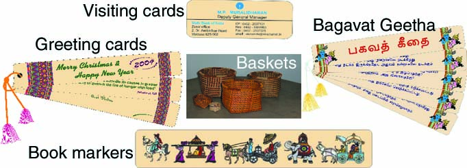out of palm leaves which are available in Ramnad district, a drought prone area. These palm leaves are used for making attractive visiting , greeting & wedding cards,